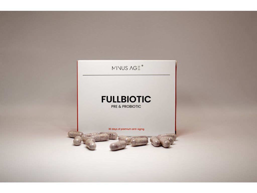 Minus Age Fullbiotic obsahuje nejen probiotika, ale také prebiotika. Složky umožňující růst těch správných kultur pro zdravý mikrobiom celého těla.